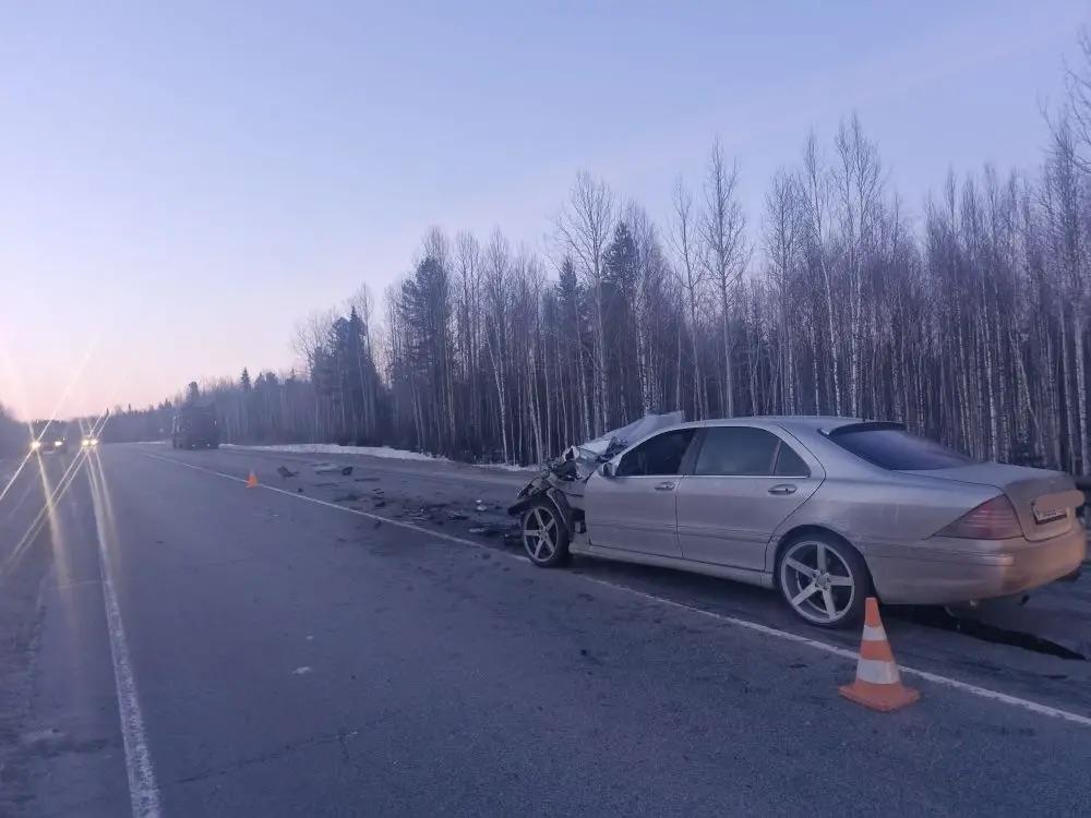 Авария на тюменской трассе: Mercedes столкнулся с Уралом