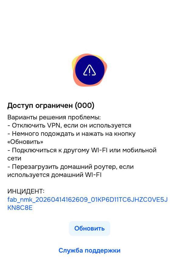 Аналогичные предупреждения фиксируются и в других приложениях. Например, система может выводить сообщение: «Похоже, вы используете VPN. С ним зайти не получится из-за действующих ограничений».
